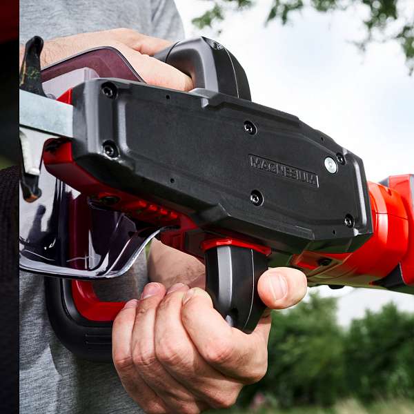 Snadná, energii šetřící manipulace v jakékoli pracovní poloze je zajištěna díky 5-směrně nastavitelné rukojeti - která chrání zápěstí a je zvláště výhodná při nepřetržitém používání. To vám dává flexibilitu a umožňuje vám dosáhnout optimálního vyvážení nůžek na živý plot a držení těla příznivého pro tělo pouhým otočením rukojeti. Spodní strana akumulátorových nůžek na živý plot je vyrobena z vysoce kvalitní slitiny hořčíku, což má za následek mimořádnou stabilitu a robustnost.