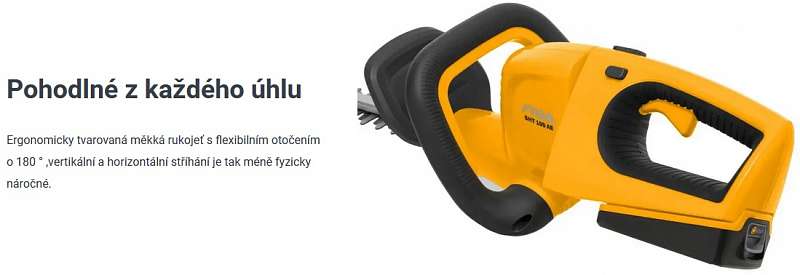 SHT 100 AE Kit je akumulátorový plotostřih, který usnadňuje práci při náročných zahradnických úkolech. Pohodlně a bez přívodního kabelu můžete nechat 55 cm dlouhou dvojčinnou čepel z kalené oceli stříhat živé ploty a keře. 20V baterie poskytuje na jedno nabití až 40 minut pracovního času a činí stroj tišším než jakýkoliv typický benzínový plotostřih. Díky 18 mm mezeře mezi zuby, čepel snadno přestřihne i středně silné větve. Pro větší pohodlí je tento akumulátorový plotostřih vybaven nastavitelnou rukojetí s měkkým polstrem otočnou o 180 °. A s dvojitým spínačem budete mít stroj vždy pod kontrolu. Integrovaná ochrana hrotu čepele zabraňuje poškrábání stěn či plotu. Na zadní části najdete pohodlný závěsný otvor za, který můžete plotostřih bezpečně pověsit a tím uskladnit.