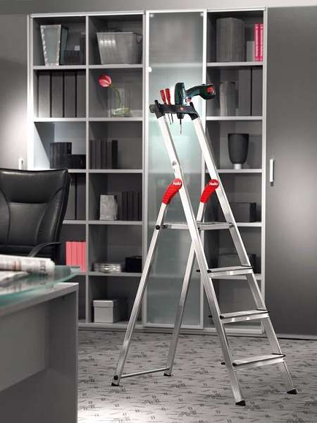 Hliníkové stupně XXL s protiskluzovým rýhováním. Multifunkční odkládací miska k odkládání nářadí, plechovek,či drobných dílů. Nosné poutko na vědro,vysavače nebo kabelu.