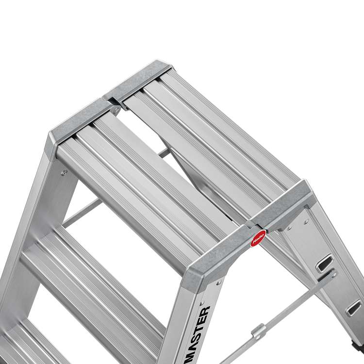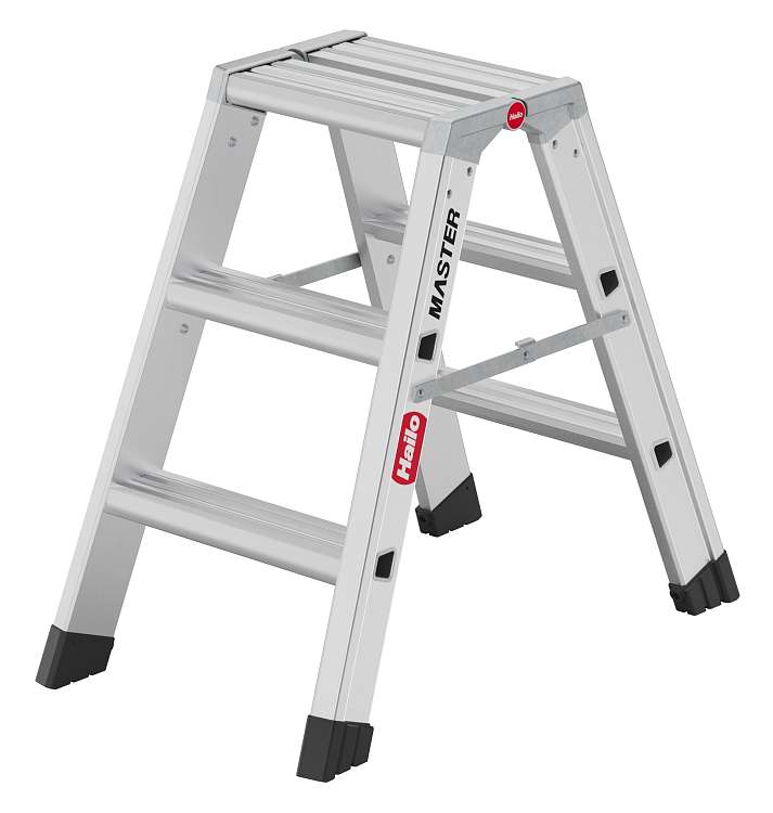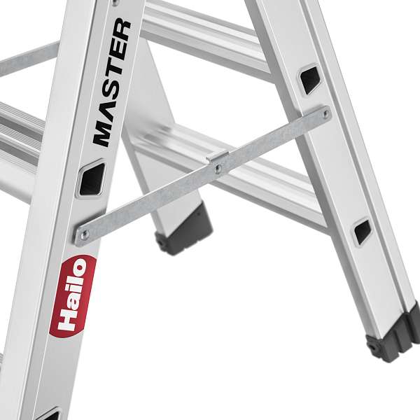 Hliníkové štafle HAILO Master D80 2x3 nášlapy je lehký a stabilní hliníkový dvoustupňový žebřík s ergonomickými stupni a velkou plochou pro postavení.