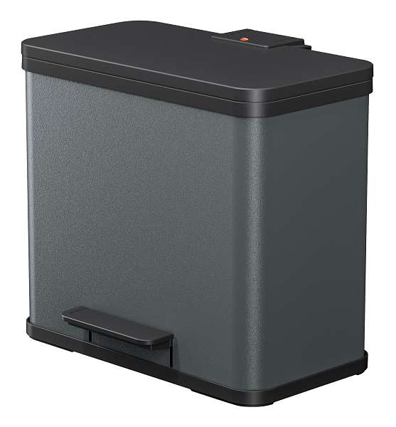 2 vyjímatelné vnitřní koše z hnědého a černého plastu o objemu 17+ 9 litrů.Víko z černého plastu .Ergonomický široký nášlapný pedál z plastu. Tlumený zavírací mechanismus víka.v. 44 cm x š. 47cm x h. 25cm.